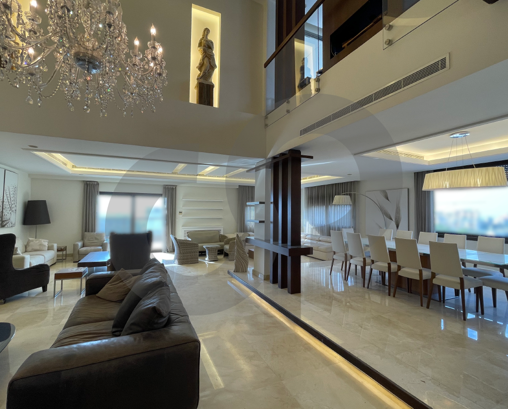 This 600-square-meter luxurious duplex is located in Hazmieh, Mar Takla, just one minute from the highway, and offers an unobstructed city view.