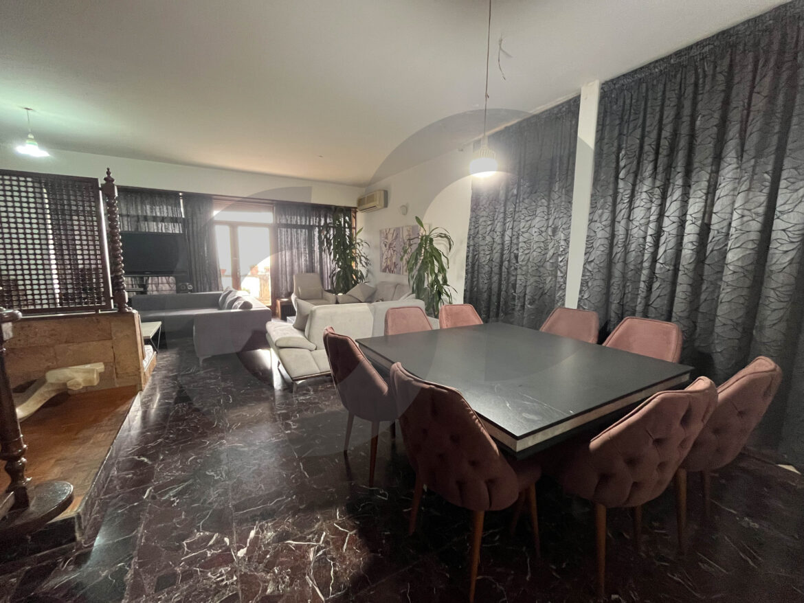 Located in the peaceful area of Awkar, this charming old triplex villa spans 650 square meters, including a garden. It features four bedrooms—one master—five bathrooms, a kitchen, and three spacious salons. Two balconies and a large terrace offer scenic views, while the garden adds a touch of greenery. With its classic design and ample space, this villa is a perfect blend of comfort and elegance.