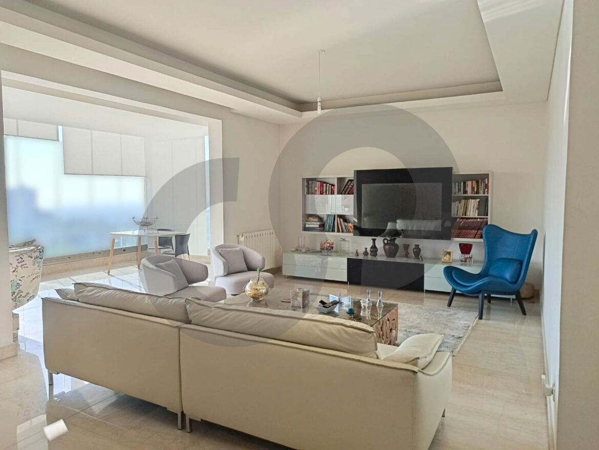 Apartment in the heart of Baabda: prime location, 24/7 electricity. Originally 3 bedrooms converted to 2 (can be turned back to 3). Includes 3 living areas, a kitchen, and a balcony with an open, unblockable view. Fully furnished and ready to move in.